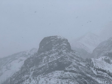 Today was my snowy return to the mountains after dislocating (and reinjuring) my shoulder over a month ago. Wasootch Ridge was the perfect place to get back at it, with lots of nearby recent summits! It snowed all day. When I occasionally spied nearby peaks, their great faces and ridges would appear in vanishing glimpses like ghosts in the clouds. For most of the day the visible landscape only contained the ridge around me and the creek to the Southwest below, with closer creek views during the flat return along it. I felt pleased with my comeback summit; 14.5km and 950m gain.